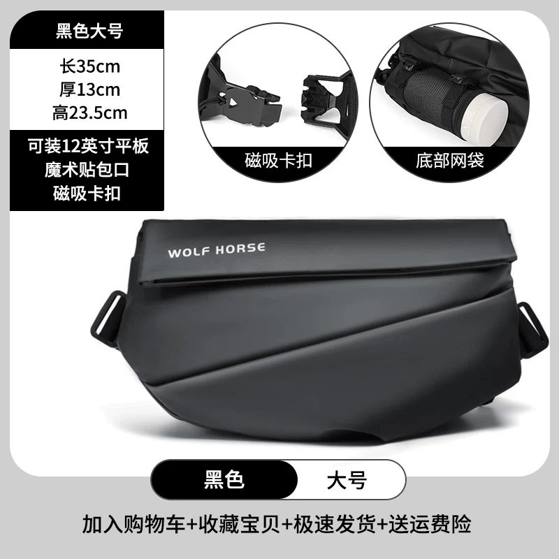 单肩斜挎包男大容量潮胸包邮差通勤包磁吸扣背包男士运动骑行跨包