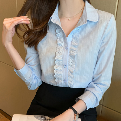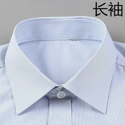 白底蓝色条纹酒店修身风免烫工装白底蓝条翻领明扣【长袖】尺码:M[建议95-105]