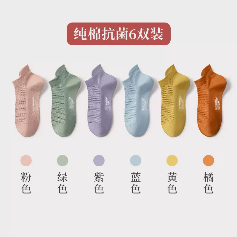 南极人袜子女纯棉白色夏季 [交易快照] 颜色分类:组合F【粉色+绿色+紫色+蓝色+黄色+橘色】尺码:【夏季网眼款】【收藏宝贝+加入购物车赠运费险】
