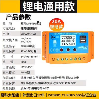 20a12v锂电池铅酸全自动控制器:20A锂电铅酸通用升级款[需备注电池类型]