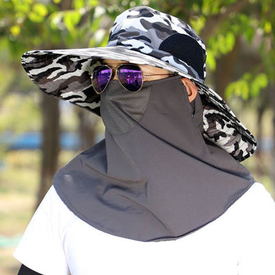 2021夏季遮阳户外钓鱼男士防晒棉麻太阳帽防紫外线遮脸透气渔夫帽:一个帽子:大檐15透气网-深灰色+面纱