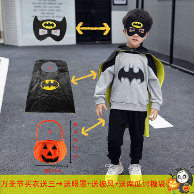 男童蝙蝠侠小孩幼儿园万圣节服装 [交易快照] 大小:130cm颜色分类:蝙蝠侠套装(送披风+眼罩+南瓜讨糖袋)