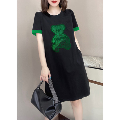 欧货休闲黑色卡通小熊刺绣连衣裙:黑色[【纯棉】]尺码:2XL[建议145-155斤]