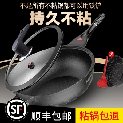 德国麦饭石不粘锅燃气电磁炉炒锅 :30cm炒锅/送蒸笼+硅胶铲[适合2-5人]