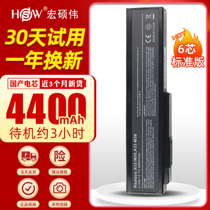 华硕N53S N61J笔记本电脑电池 [交易快照] 颜色分类:【标准版4400毫安】6芯*待机约3小时