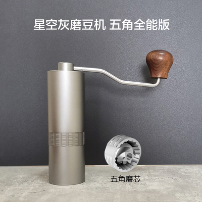 德国CNC精钢磨芯手摇磨豆机 家用手动咖啡豆研磨机意式手冲套装:星空灰(五角钢刀全能版)