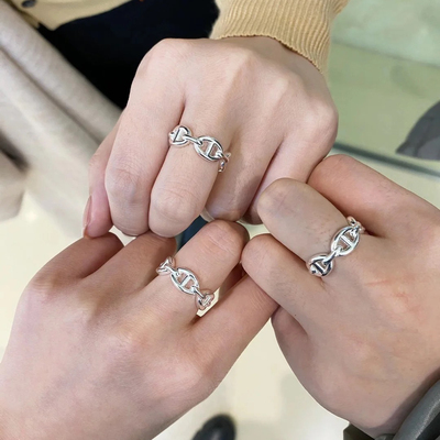 925纯银猪鼻子戒指不掉色:银色无钻6码[国码11-12号]