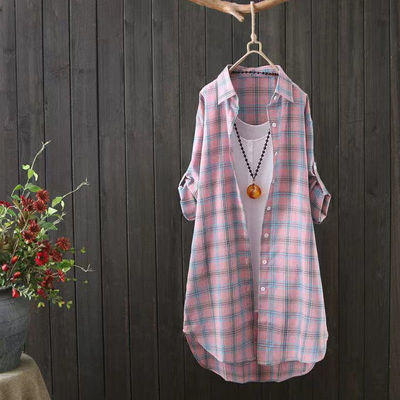 中长款长袖格子防晒衫:粉色尺码:M[建议105斤