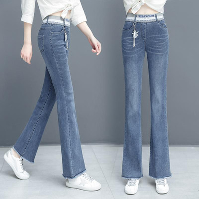 薄款微喇天丝牛仔裤女夏季高腰2022年新款春秋女士裤子直筒喇叭裤:743蓝色尺寸:S[26]