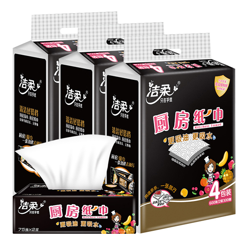 洁柔厨房抽纸2层75抽家用吸油吸水纸巾餐巾纸12包整箱一件代发