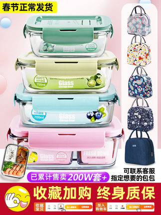 玻璃饭盒可微波炉加热专用的学生上班族带盖餐盒保鲜分隔型便当碗