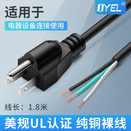 UL认证美标3脚插头线单头电源线3*0.824平方美式美规裸线尾连接线