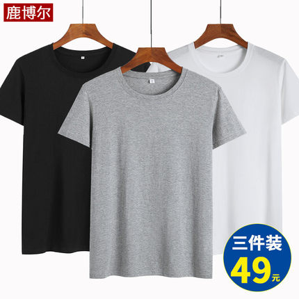 中年全棉短袖t恤男宽松白色汗衫中老年人男士圆领老头衫纯棉半袖