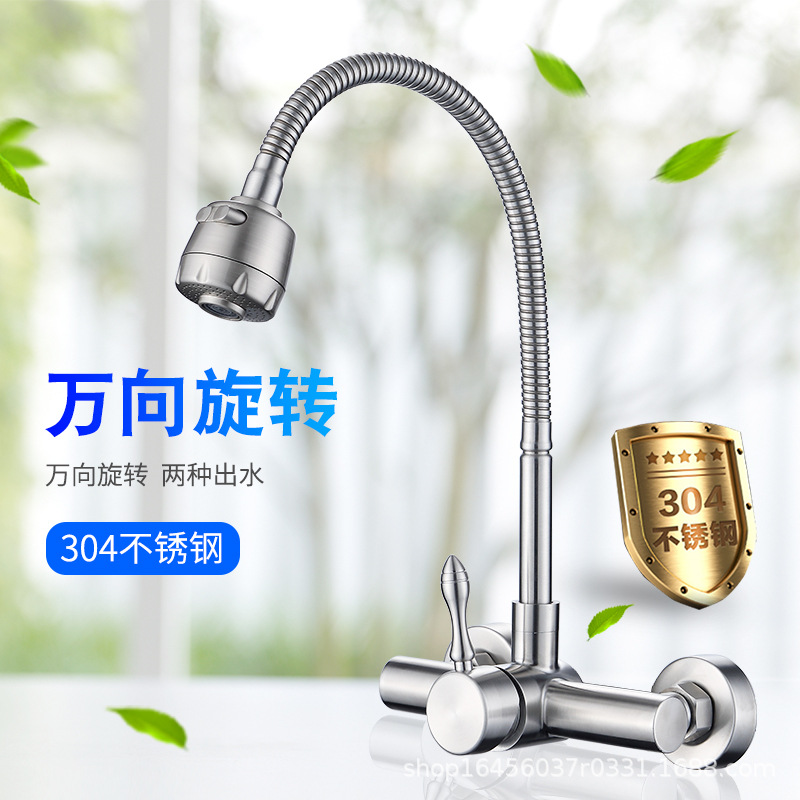 304不锈钢厨房入墙式水龙头冷热 双孔洗衣池洗菜盆水槽冷暖混水阀