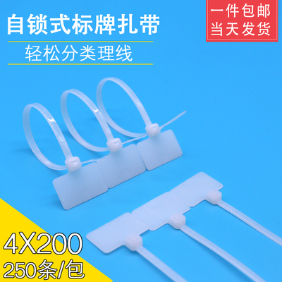 白色标牌尼龙扎带4*200mm标签扎带吊牌结束带网线电线固定扎带3.0