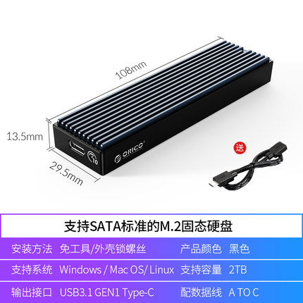 Orico/奥睿科m.2固态硬盘盒sata转usb3.1外接壳nvme铝合金ngff读取器pcie笔记本通用SSD改