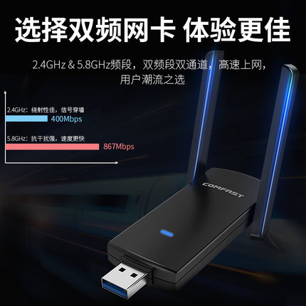 COMFAST 924AC双频1300M台式机USB千兆无线网卡电脑主机外置5G大功率无限网络笔记本WIFI接收发射