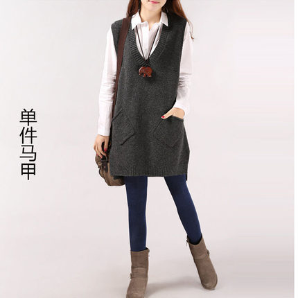 针织马甲女春秋季2021新款韩版宽松无袖坎肩外套大码毛线马夹背心