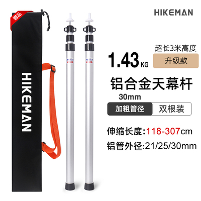 户外铝合金天幕杆帐篷门厅支撑杆铝杆超长3M伸缩营柱支架加粗两根