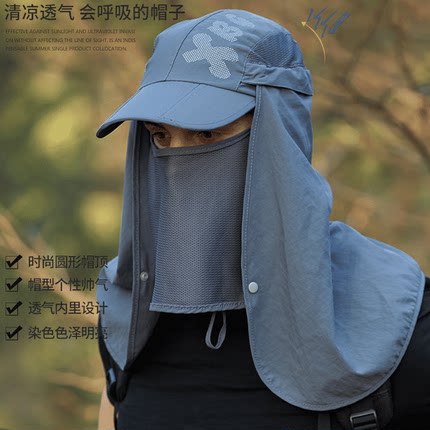 帽子男遮阳帽夏户外渔夫帽钓鱼骑车防晒面罩电动车太阳帽女披肩
