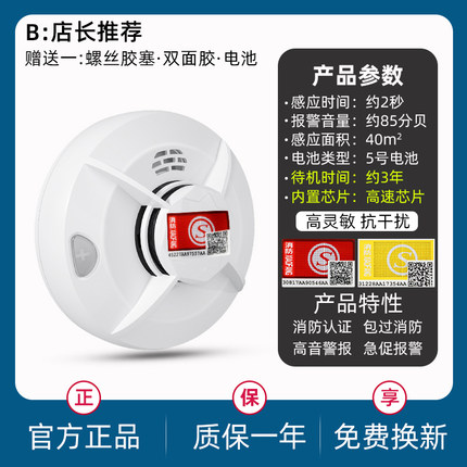 烟雾报警器消防专用3c认证商用家用独立式火灾感应室内烟感探测器