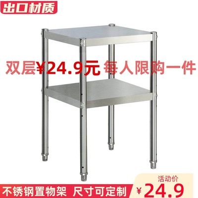 不锈钢正方形厨房置物架夹缝收纳架落地微波炉家用双层储物小架子