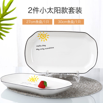 家用鱼盘子菜盘陶瓷北欧式简约创意碟子套装大号长方形蒸烤餐具