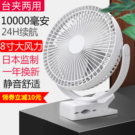 Svinkal USB小风扇静音大风力学生宿舍便携式婴儿车床上户外货车办公室厨房长续航8寸可充电桌面迷你夹