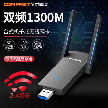 COMFAST 924AC双频1300M台式机USB千兆无线网卡电脑主机外置5G大功率无限网络笔记本WIF