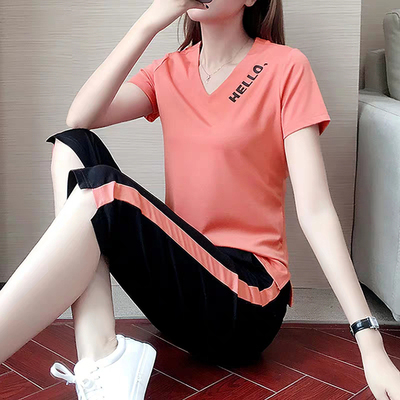 休闲运动服套装女洋气夏装2021新款潮夏天韩版宽松V领女装两件套