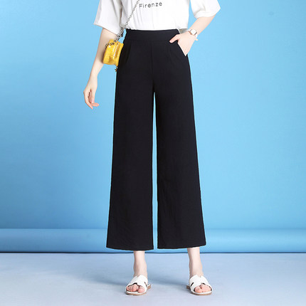 冰丝阔腿裤女夏高腰垂感黑色宽松棉麻夏季薄款九分休闲直筒裤长裤