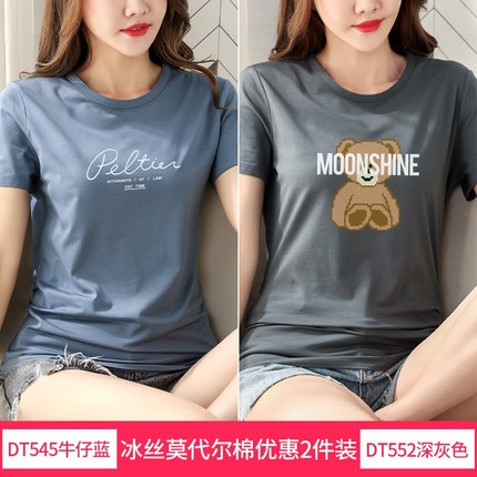 莫代尔冰丝短袖T恤女夏季休闲半袖印花上衣2021新款薄款冰感体恤