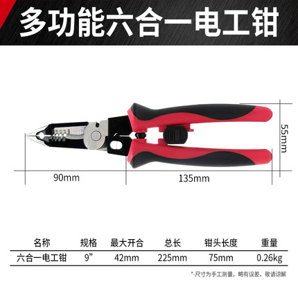 六合一多功能电工钳剥线钳压线钳尖嘴钳电缆剪线剥扒皮钳子9寸