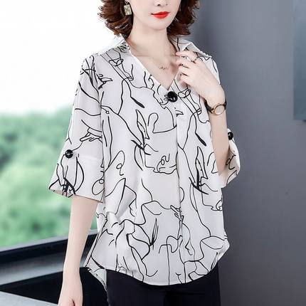大码女装200斤雪纺衫上衣女夏宽松遮肚洋气显瘦女士短袖2021新款