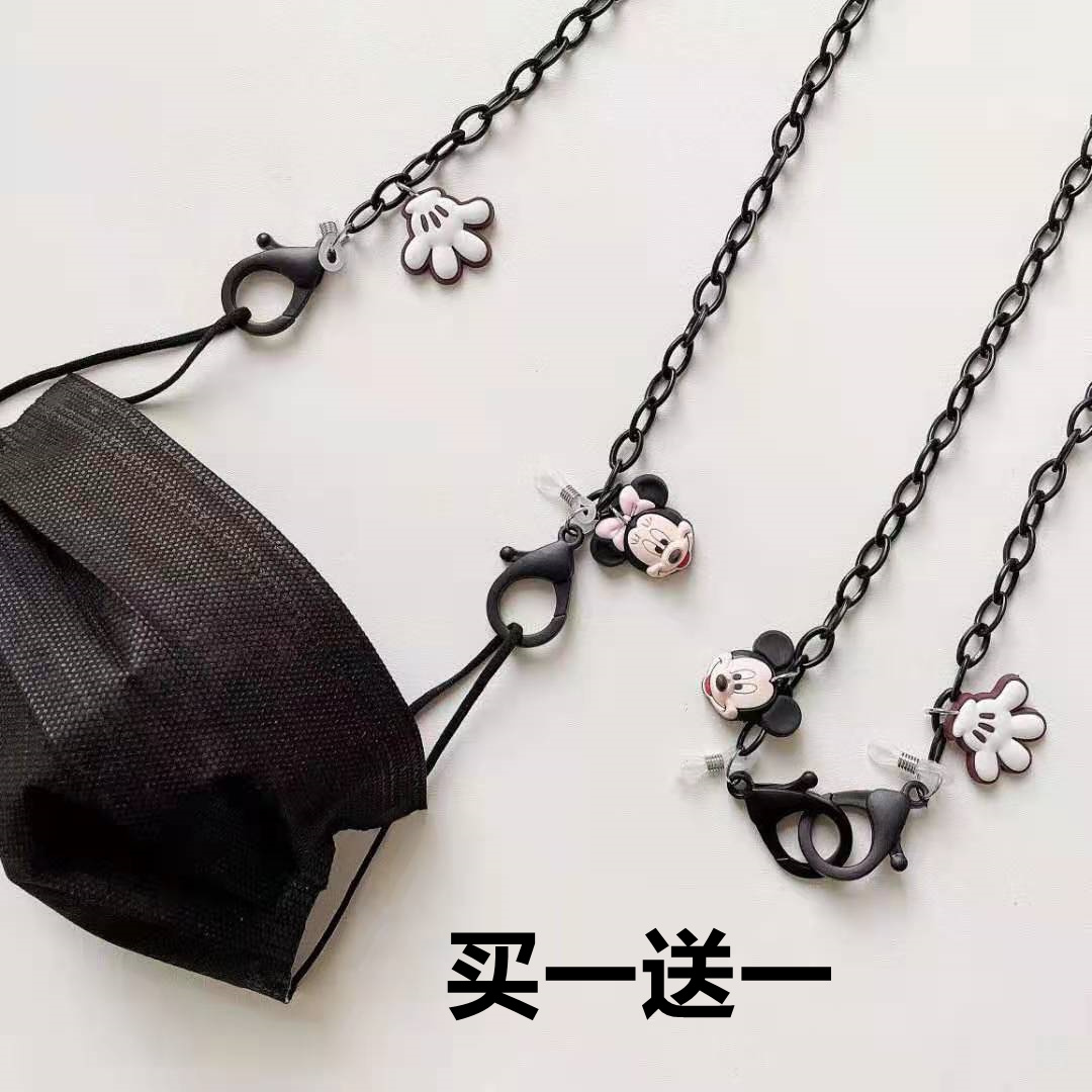 新款休闲简约黑色亚克力挂绳小老鼠口罩链眼镜链 [