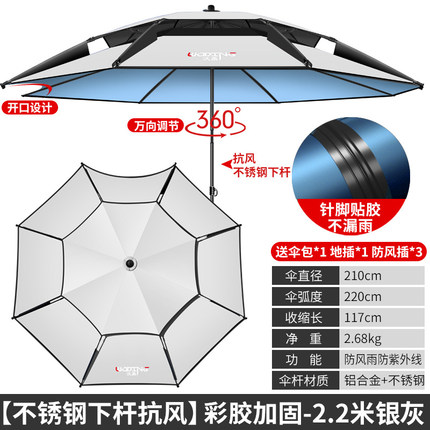 沃鼎新款钓鱼伞遮阳雨伞鱼伞万向防暴雨加厚防晒不锈钢大钓伞