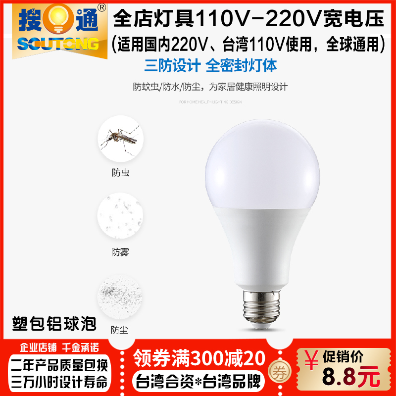 大角度发光防潮湿防虫进塑包铝E27螺口LED球泡灯泡110V220V宽电压E27(塑包铝)-110V宽电压功率:12W发光颜色:白