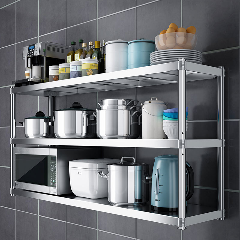 不锈钢厨房壁挂置物架2调料架挂架双层上墙架3收纳微波炉储物架子