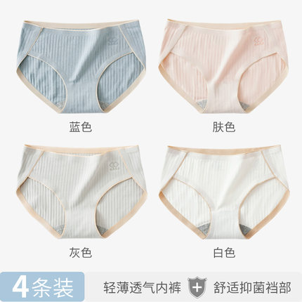 南极人纯棉无痕内裤女士石墨烯抗菌裆日系透气中腰大码条纹三角裤