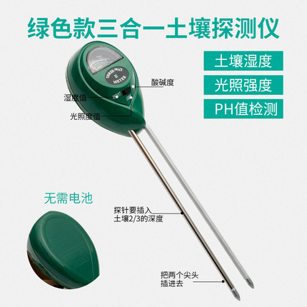 土壤酸碱度湿度检测仪养分水分ph测试计高精度家用园艺花草肥度计