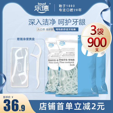 乐德牙线牙签家庭装超细牙线棒便携式一次性塑料牙线900支包邮