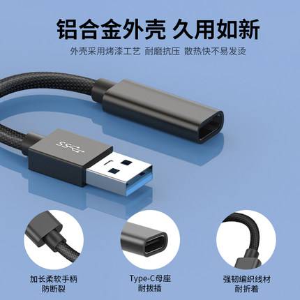 usb3.1公转type-c母转接头延长线数据3A快充线传输USB-C手机数字耳机转换器适用于华为小米笔记本台式电脑