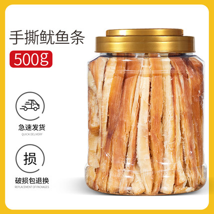 碳烤墨鱼条500g鱿鱼丝即食零食手撕散装罐装孕妇海味小吃休闲特产【鲜烤原味】现烤鱿鱼条500g罐