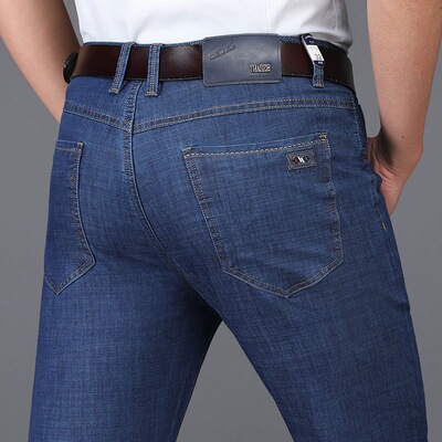 天丝夏季超薄款牛仔裤男直筒宽松中年高腰爸爸装男士冰丝弹力长裤