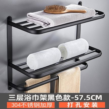 黑色浴巾架双层毛巾架毛巾挂卫生间置物架壁挂式浴室厕所挂件三层