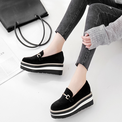松糕鞋女厚底2020新款百搭绒面防水台单鞋内增高休闲一脚蹬英伦风