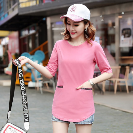 纯棉短袖t恤女2020年夏季新款大码宽松半袖中长款中袖上衣服ins潮