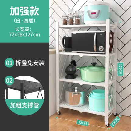 免安装厨房置物架不锈钢折叠微波炉烤箱用品收纳架子家用落地多层
