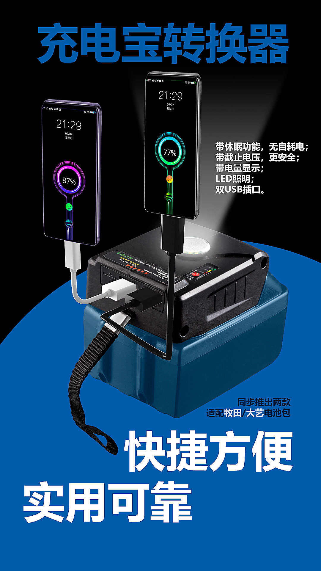 锂电池充电宝转换器双USB 大牧艺田款、东城新款 老款 可定制