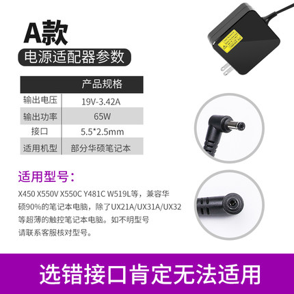 华硕笔记本充电器电源适配器电脑充电器19V3.42A原装正品通用X550C A450C Y481C adp-65电源